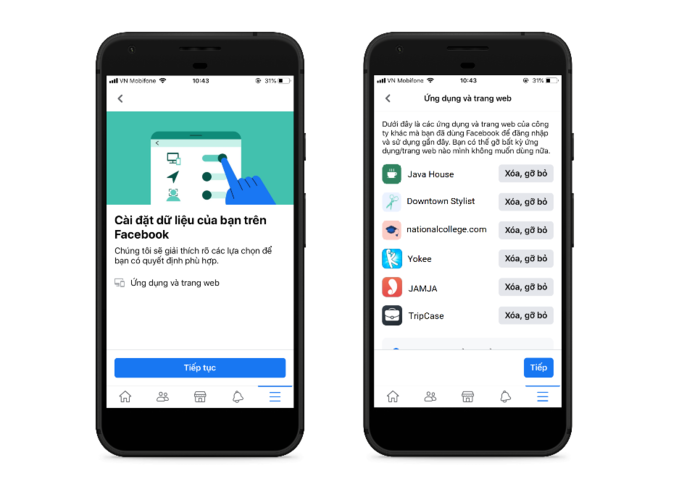 4. Cài đặt dữ liệu của bạn trên Facebook: Theo mạng xã hội tỷ người, tùy chọn “Cài đặt dữ liệu của bạn trên Facebook” giúp bạn kiểm tra những thông tin bạn đang chia sẻ với các ứng dụng mà bạn đã đăng nhập bằng Facebook. Bạn còn có thể gỡ bỏ những ứng dụng mà bạn không còn dùng nữa.
