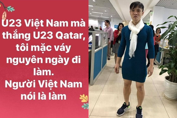 Không khí cổ vũ U23 Việt Nam trước trận bán kết dâng cao khi xuất hiện trào lưu phát ngôn "Nếu Việt Nam thắng tôi sẽ...". Hàng loạt status được treo lên tường Facebook, hứa sẽ cởi áo, cạo đầu, nhuộm tóc, ăn chay một tháng, treo avatar một tuần, không nhận cát-xê đóng phim... Tưởng chỉ là status "ăn theo" trào lưu, nào ngờ, tinh thần "Việt Nam nói là làm" sau trận đấu còn cao hơn thế.