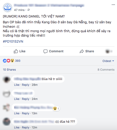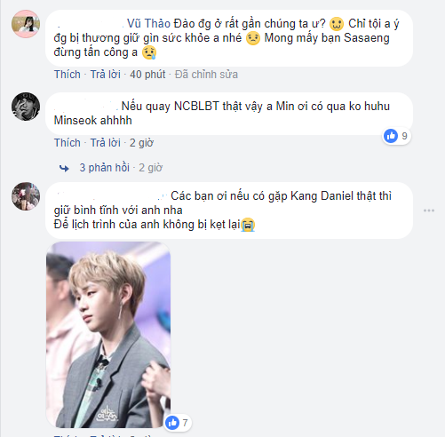 Bên cạnh đó, nhiều fan cũng khá lo lắng kêu gọi mọi người bình tĩnh nếu thông tin Kang Daniel đến Việt Nam là thật và không nên chen lấn vì thành viên nhóm Wanna One đang bị thương ở tay.