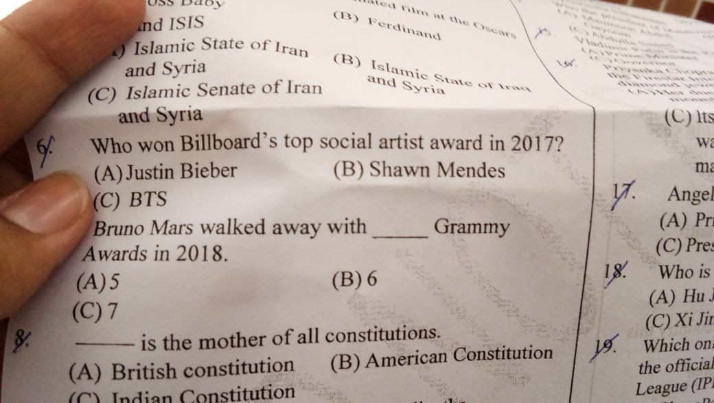 Mới đây, trên các diễn đàn K-Pop xuất hiện bức ảnh chụp đề thi của một trường đại học ở Ấn Độ, và khiến dân tình xôn xao vì có BTS xuất hiện là một, đề thi quá dễ là hai.