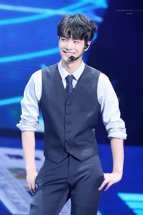 Hyojin (ONF) à! Sao ai cũng áo đen nam tính, còn cậu thì một mình trắng xoá và đáng yêu thế kia hả?
