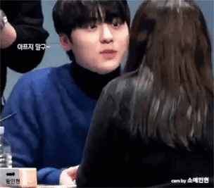 Hầu như idol K-Pop nào cũng siêu dịu dàng, ngọt ngào với fan. Nhưng Minhyun (Wanna One) vẫn được coi là cao thủ trong khoản thả thính làm trái tim các fan loạn nhịp. Chẳng thế mà nhiều fan đã thú nhận mình chẳng dám đến các buổi fan sign của Wanna One, vì sợ dính thính và kết quả là đêm ngày mất ngủ vì tương tư Minhyun.