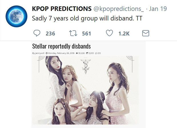 Kpop Predictions thông báo chuẩn bị có nhóm nhạc nữ 7 tuổi tan rã và chỉ một tháng sau đó, các thành viên Stellar tuyên bố chính thức chia tay nhau, chấm dứt hoạt động của nhóm nhạc này.