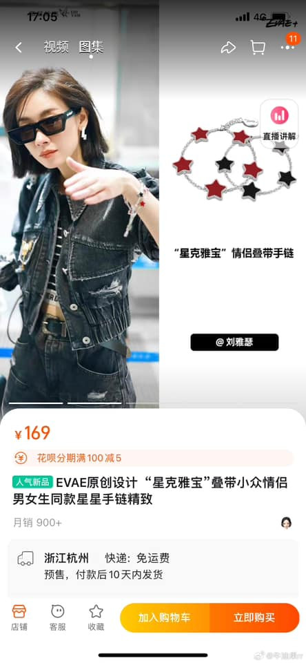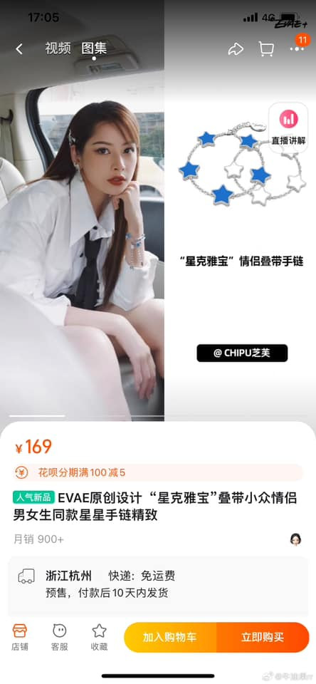 Ngay sau đó, mẫu vòng này cũng lập tức cháy hàng trên hệ thống. Phía nhãn hàng ngay cũng đăng bài cảm ơn Chi Pu và Lưu Nhã Sắt trên Weibo vì đã sử dụng sản phẩm của hãng.