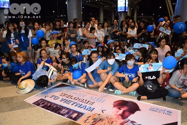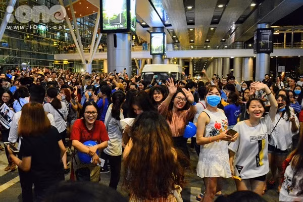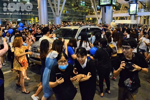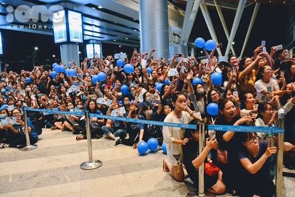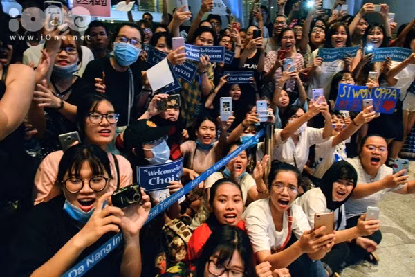 Hàng trăm fan hâm mộ phấn khích reo hò, gọi tên khi nhìn thấy thần tượng "bằng xương bằng thịt".