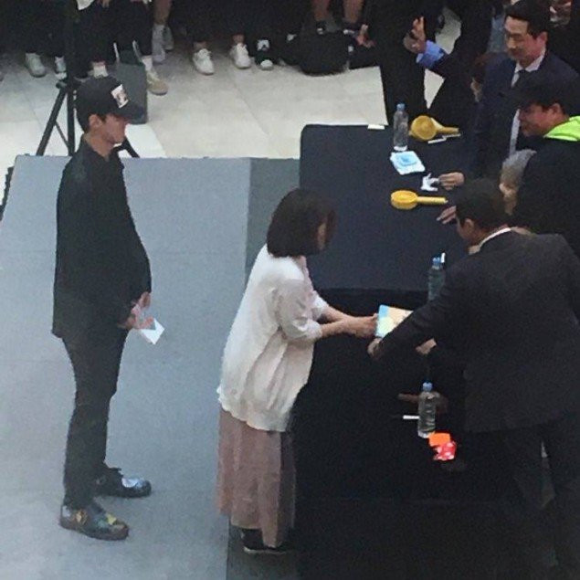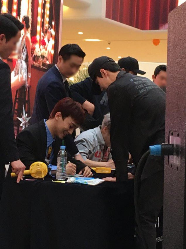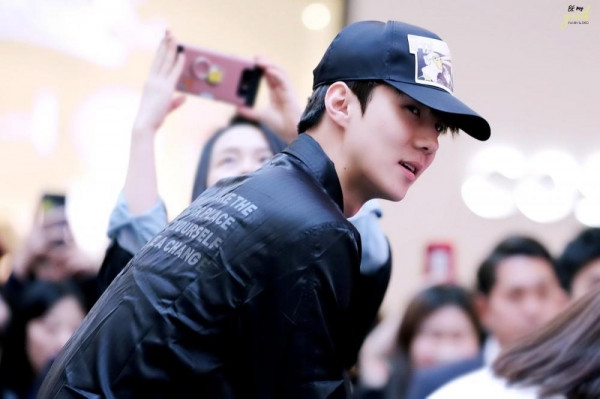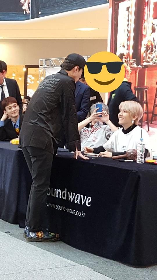 Lúc này, có một anh chàng cao to đẹp trai xuất hiện trong dòng người đang xếp hàng chờ xin chữ ký của EXO-CBX, giống như bao nhiêu fan khác.