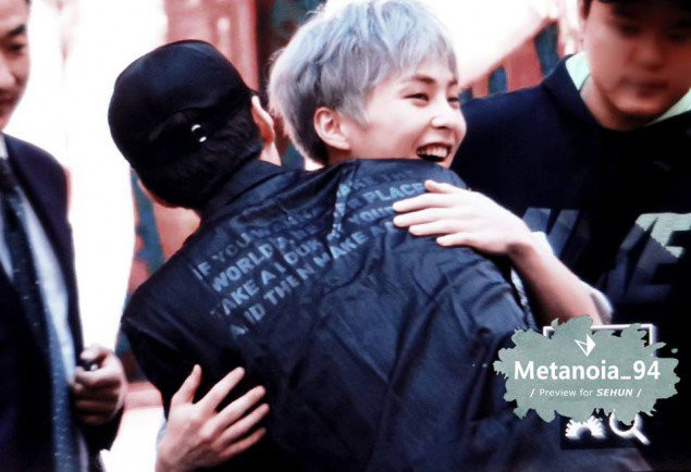 Xiumin không quên ôm Sehun thật chặt thay cho lời cảm ơn.