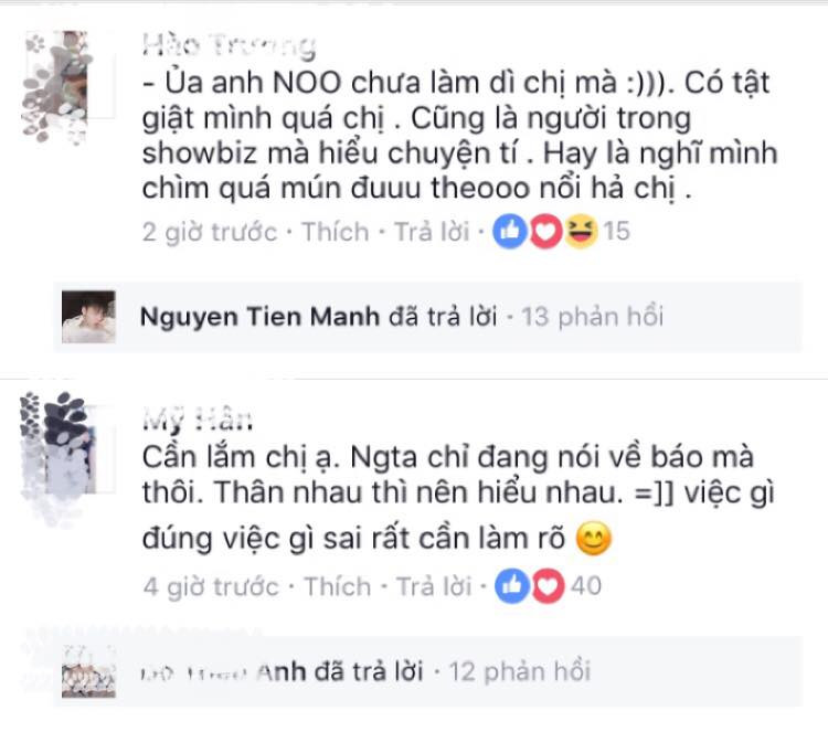 Thay vì bàn cãi, nhiều khán giả lại tỏ rõ sự không ủng hộ của cả hai bên. Họ cho rằng hai nghệ sĩ có thể gặp nhau để thẳng thắn nói chuyện. Trước đó, tin đồn về mối quan hệ của Noo Phước Thịnh và Đông Nhi có dấu hiệu bất hòa cũng đã "dậy sóng".