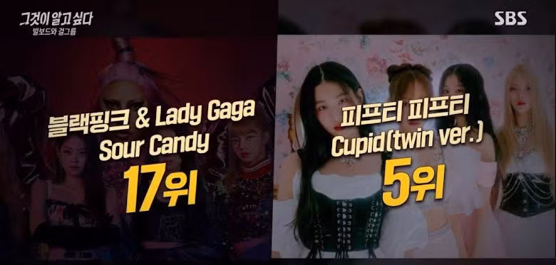 Tại một thời điểm khác trong tập phim, BLACKPINK và ca khúc hợp tác của họ với Lady Gaga, có tên là Sour Candy, cũng bị đem ra so sánh với FIFTY FIFTY và phiên bản tiếng Anh của ca khúc hit Cupid của nhóm.