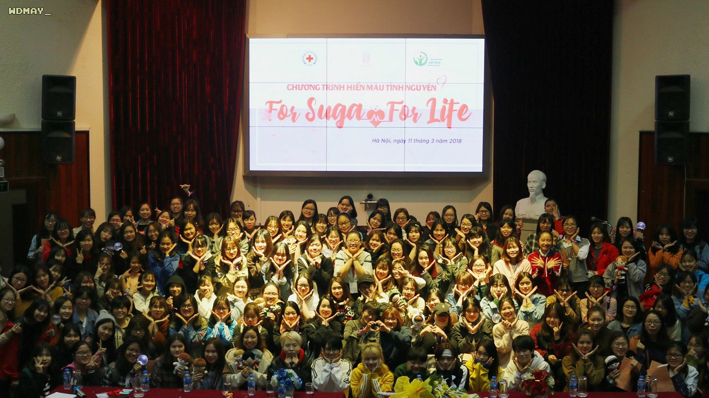 Ngày 9/3 vừa qua là sinh nhật lần thứ 26 của Suga. Để chúc mừng Suga, các V-A.R.M.Y đã tặng anh chàng một món quà rất đặc biệt. Các bạn đã phối hợp với Bệnh viện Việt Đức và Hội chữ thập đỏ quận Long Biên tổ chức chương trình hiến máu tình nguyện mang tên For Suga, For Life vào Chủ Nhật ngày 11/3/2018 tại hội trường Tôn Thất Tùng, Bệnh viện hữu nghị Việt Đức, Việt Nam. Đến dự với chương trình có lãnh đạo Bệnh viện Việt Đức, lãnh đạo Hội chữ thập đỏ thành phố Hà Nội, Hội chữ thập đỏ quận Long Biên.
