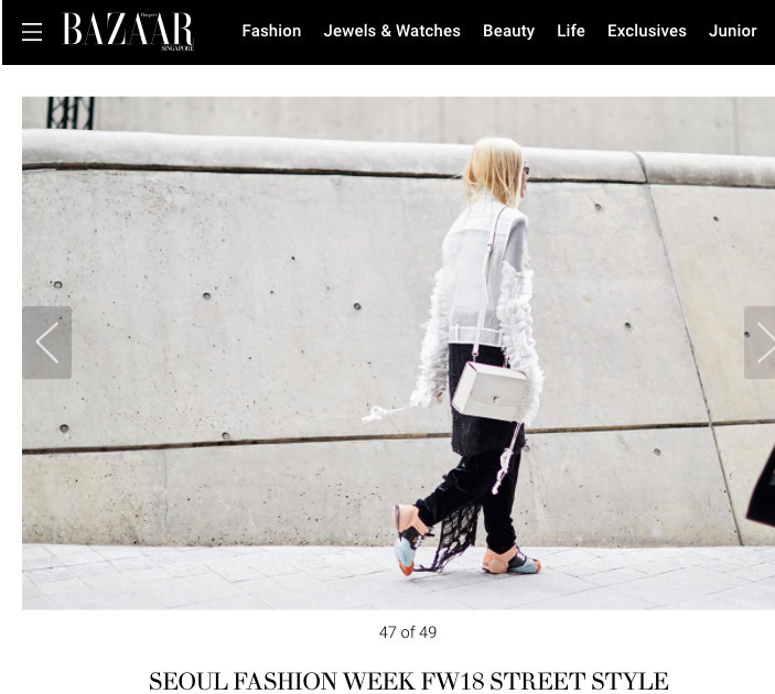 Một hình ảnh khác khi cô nàng “nấm lùn” biến hóa “chất lừ” chỉ với hai tông đen - trắng khi diện áo sơ-mi cách điệu kết hợp cùng quần giả rách, giày thể thao cũng đã xuất hiện trong bảng Best street style do tạp chính Harper's Bazaar Singapore bình chọn.