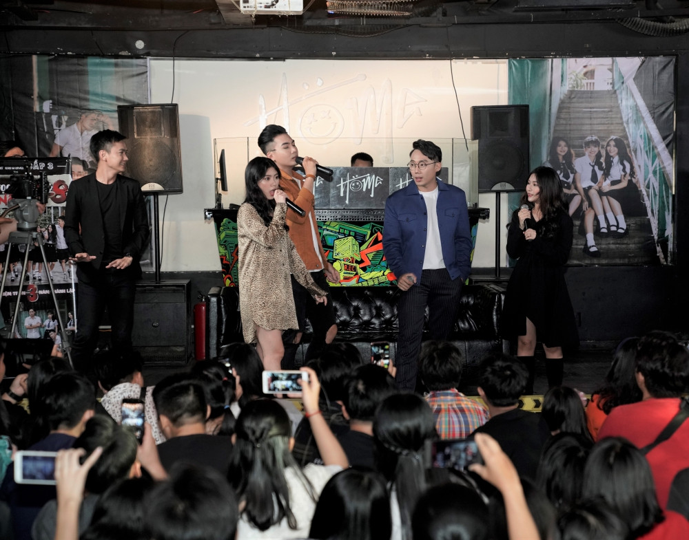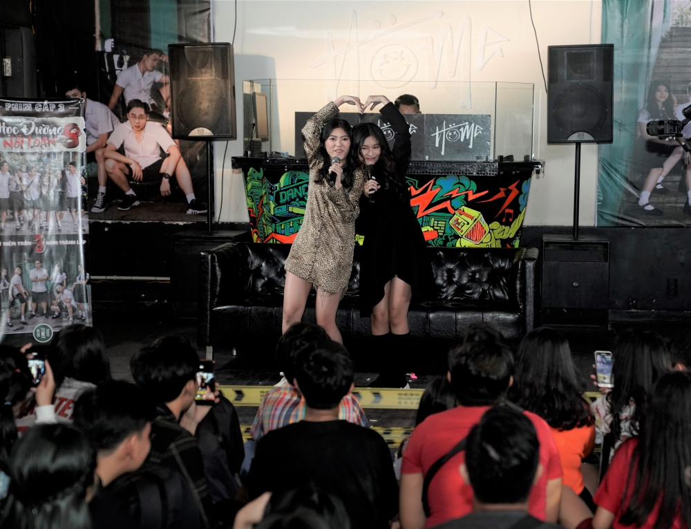 Không chỉ giao lưu, trả lời tất tần tật mọi thắc mắc mà ekip Phim cấp 3 đã hết mình với gần 500 người hâm mộ qua các trò chơi, có lẽ đặc biệt nhất chính là trước sự quản trò của Phương Quỳnh – cô nàng sở hữu vẻ ngoài xinh xắn đã làm cho mọi người thua cuộc và thực hiện trào lưu “Cùng nhau té sấp mặt” đang được yêu thích trên mạng xã hội hiện nay.