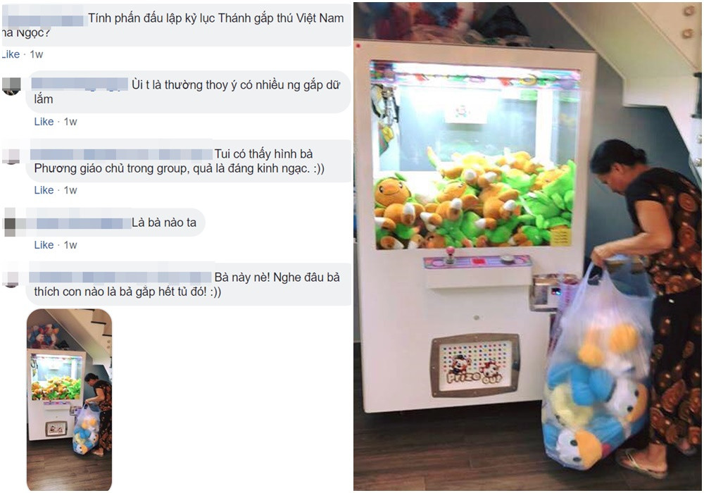 Các bạn trẻ thật không ngờ có ngày lại "chinh phục" được những cỗ máy khó nhằn này. Có bạn còn nghĩ do máy bị hư nên mới có thể dễ dàng gắp trúng đến như vậy.
