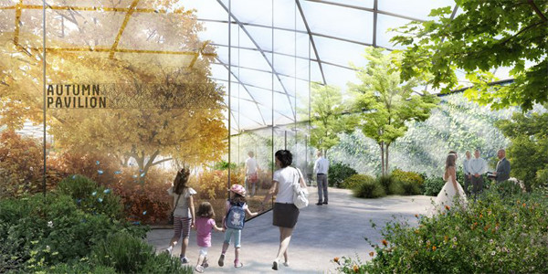 Khu vườn gồm 4 phòng kín rộng khoảng 500 m2, cao 5m có bốn vùng khí hậu tự nhiên, tương ứng với bốn mùa. Những người tới tham quan sẽ được đắm mình trong thiên nhiên khi họ đi lang thang qua mùa Đông, mùa Xuân, mùa Hè và mùa Thu.