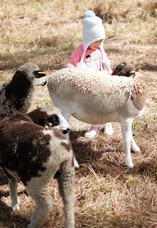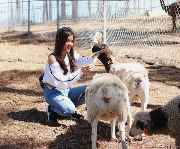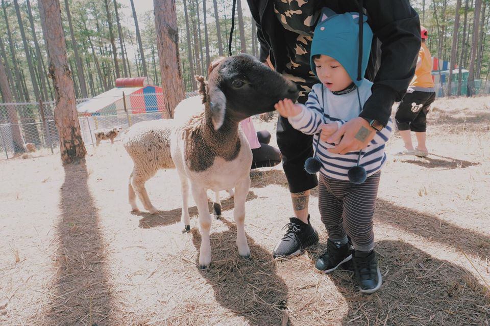 Bé Hehe vui vẻ chơi đùa cùng cừu đốm. (Nguồn: FB Lâm Thuý Nhàn)