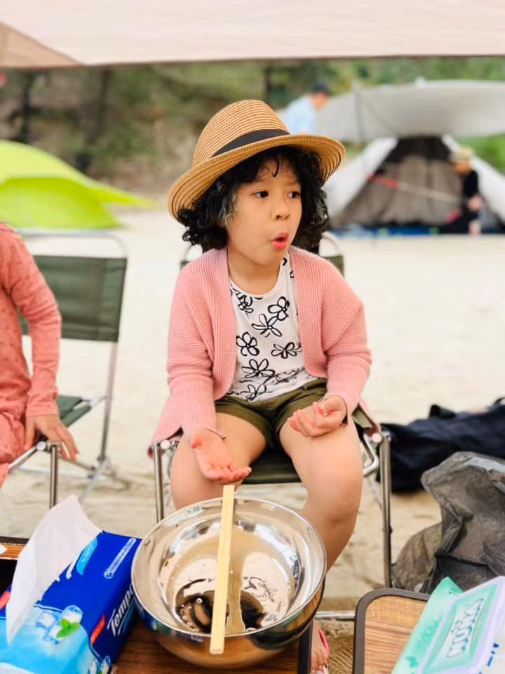 Trong ảnh, cô bé luôn có những biểu cảm khiến người xem phải thốt lên cưng "xỉu". Được bố mẹ nhấc bổng lên cao khiến Winnie rất thích thú. Bên cạnh đó, ái nữ còn trải nghiệm nhiều hoạt động thú vị cùng bố mẹ như dựng lều, đốt lửa trại,...