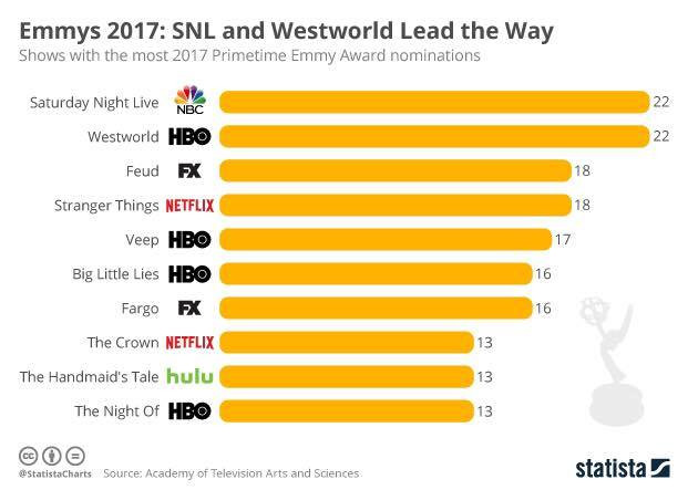 Vừa qua, Viện Hàn lâm Khoa học và Nghệ thuật Truyền hình Mỹ vừa công bố danh sách đề cử giải Primetime Emmy Awards lần thứ 69 (Emmy dành cho các phim khung giờ vàng). Giải thưởng nhằm tôn vinh những bộ phim, chương trình, talkshow truyền hình được phát sóng trong giai đoạn từ ngày 1/6/2016 - 31/5/2017).