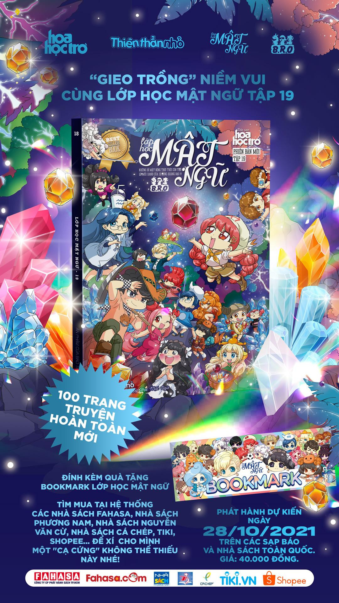 Lớp Học Mật Ngữ Tập 19 dự kiến phát hành ngày 28/10/2021, đính kèm phụ kiện 12 bookmark Lớp Học Mật Ngữ siêu xinh (lớp Hoàng Cung hoặc lớp Hoàng Đạo, đính kèm ngẫu nhiên khi mua sách). Bạn có thể tìm mua tại hệ thống nhà sách FAHASA, nhà sách Phương Nam, nhà sách Cá Chép, Tiki, Shopee... với giá: 40.000 đồng.
