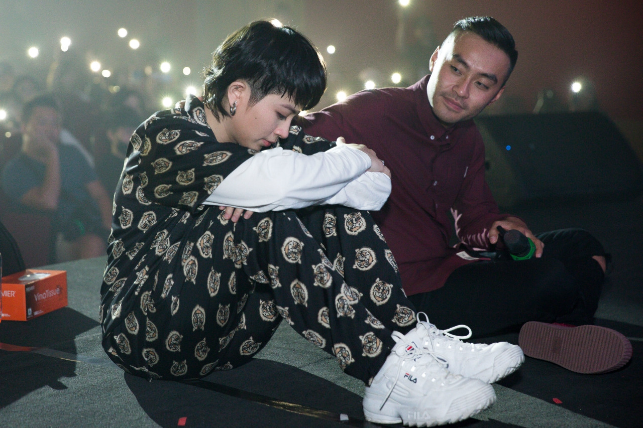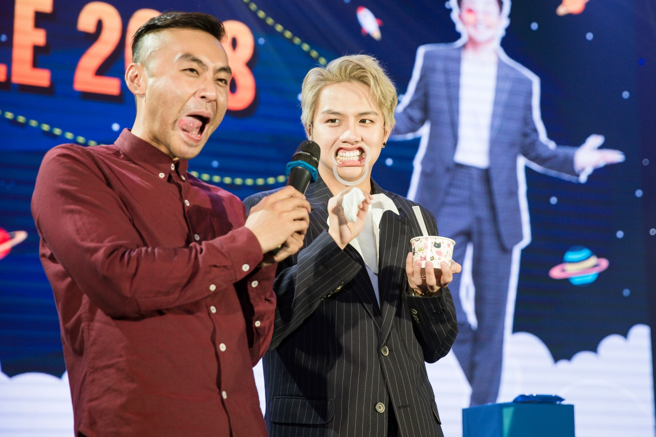 Người bạn thân thiết trong giới của Gil là Duy Khánh Zhou Zhou cũng có mặt tại chương trình. Và anh chàng “xấu số” này đã bị người bạn thân của mình bắt ép phải ăn món ăn có phần “kỳ lạ” này trên sân khấu. Biểu cảm của Duy Khánh “nhắm mắt đưa chân”, cố gắng nuốt thứ thức ăn lạ lùng này vào bụng, khiến khán giả không khỏi cười ồ thích thú.