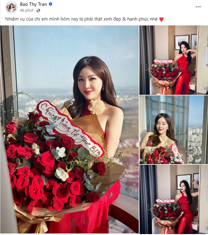 Rộn ràng ngày Quốc tế Phụ nữ 8/3, dàn mỹ nhân Việt như Thùy Tiên, Phương Anh, Lệ Quyên, Minh Hằng, Bảo Thy,... hạnh phúc khoe những đóa hoa tươi rực rỡ và những món quà từ "nửa kia" hay đồng nghiệp tặng.