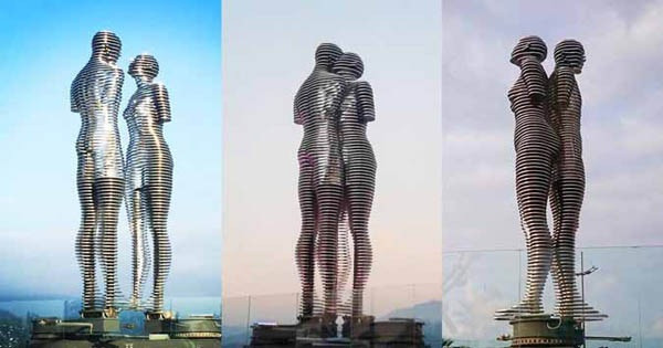 Được biết, bức tượng cặp tình nhân được làm từ thép di động, cao 8m bởi nhà điêu khắc Tamara Kvesitadze. Sau một ngày dài xa cách, cứ đến 7 giờ tối, "Ali và Nino" sẽ nhẹ nhàng chuyển động sát lại quấn quýt lấy nhau, để rồi lại lìa xa nhau ngay sau đó.
