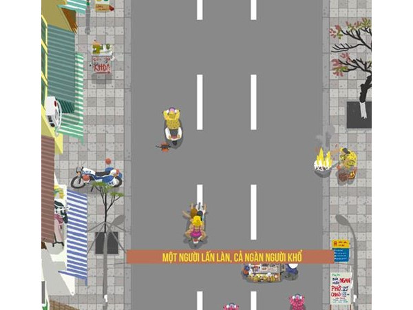 Giao diện game tạo tái hiện chân thực và sinh động cảnh lưu thông trên đường phố Việt Nam.