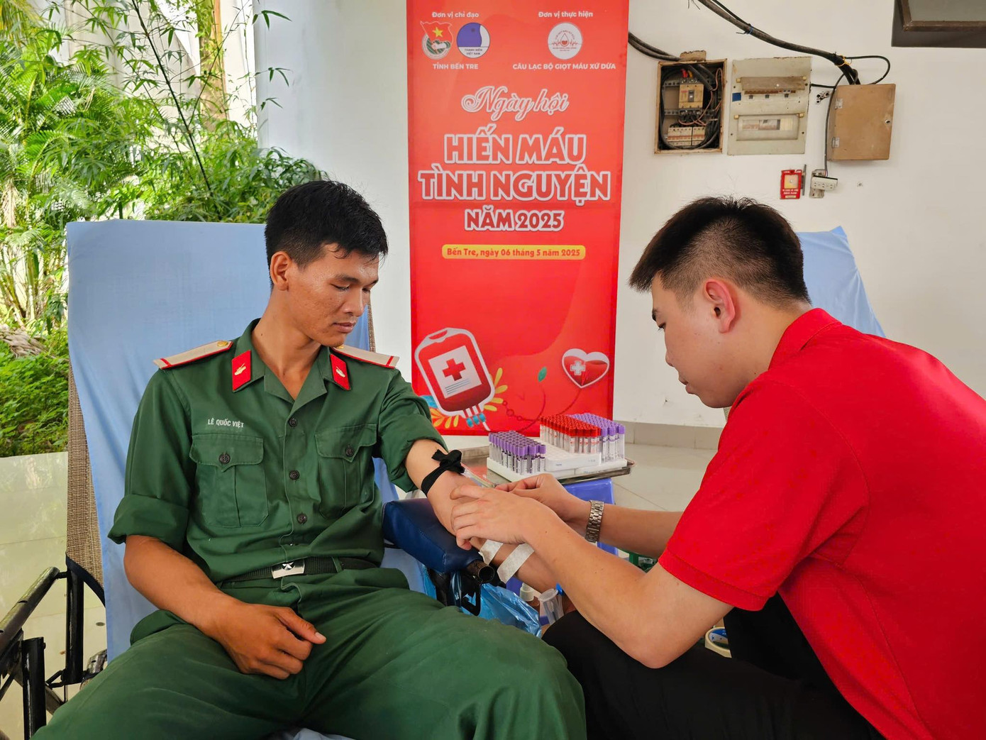 Cùng tham gia hiến máu, Thiếu úy Hà Xuân Khoa - Bộ Chỉ huy Quân sự tỉnh Bến Tre chia sẻ: “Sau khi hiến máu tình nguyện, tôi cảm thấy trong lòng tràn đầy niềm vui và tự hào, dù chỉ là một lượng máu nhỏ nhưng tôi biết rằng nó có thể mang lại cơ hội sống cho những người đang cần”.