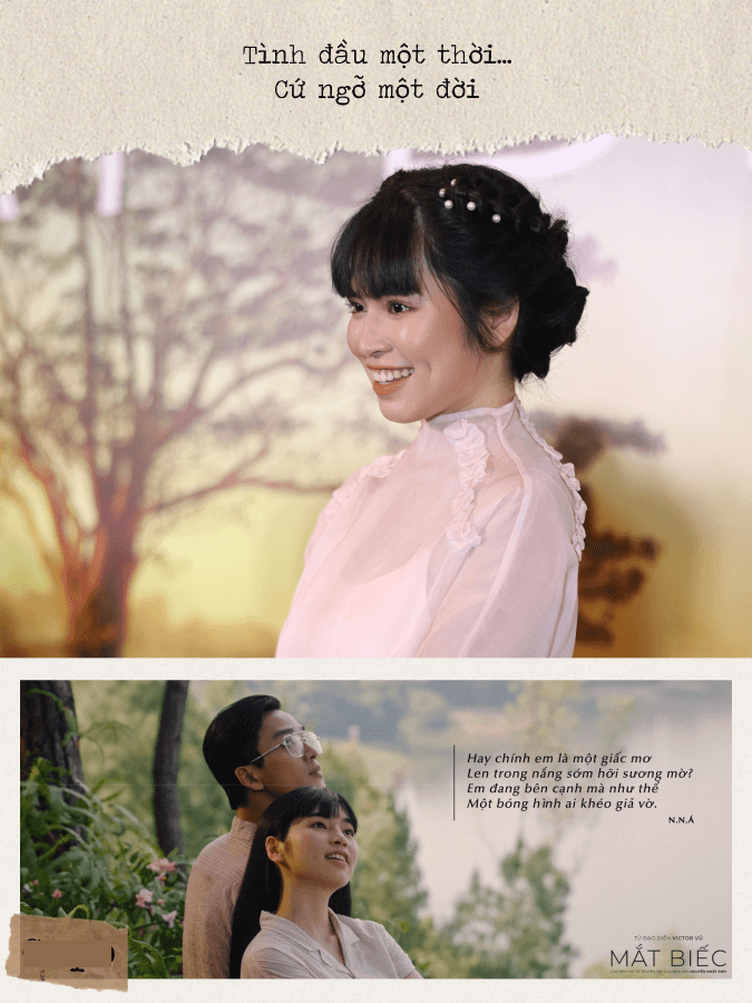 Còn cô nàng Trúc Anh lại khiến khán giả “đổ gục” vì sự dễ thương của mình khi không chỉ đăng ảnh mà còn có thả "thính sương sương": “Tự dưng tung dàn frame Mắt Biếc chi rồi giờ mình cứ phải ngồi mê say ghép hết tấm này đến tấm kia vậy à".