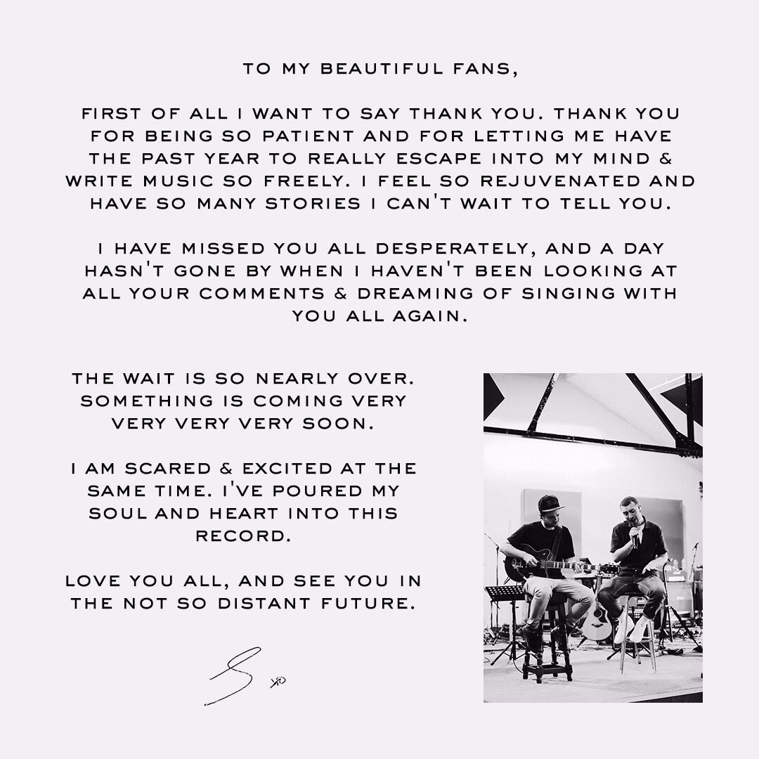 Sau ba năm dành thời gian nghỉ ngơi, lần trở lại này của Sam được mong đợi rất nhiều. Liệu anh chàng sẽ thử sức mình với gu âm nhạc mới lạ hay vẫn trung thành với những bản Ballad “sâu đíp”? Thật khó mà đoán được. Câu trả lời sẽ chỉ có vào ngày 8/9 sắp tới!