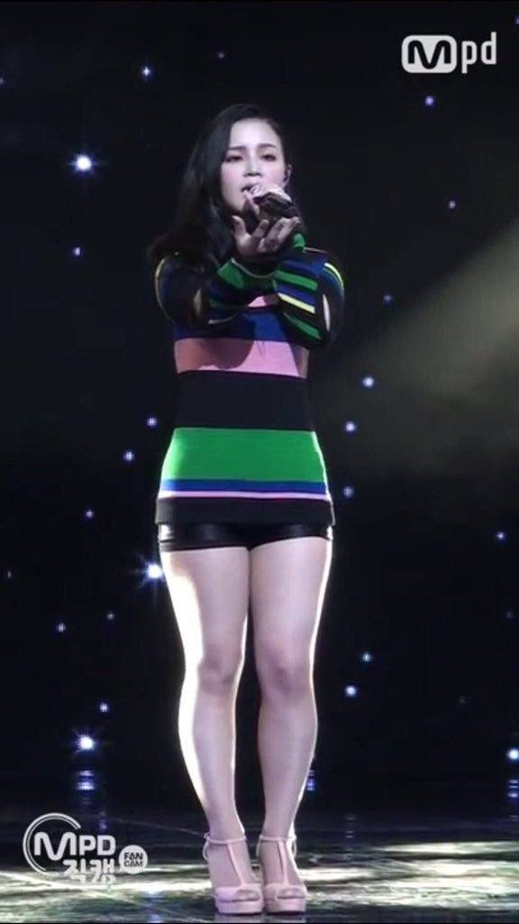 Hwasa nhóm Mamamoo cũng có nhược điểm là phần đùi lớn.