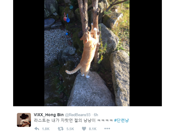 HongBin chốt hạ buổi spam series ảnh và video bằng một clip ngắn quay cảnh chú mèo cùng lời nhắn: “Í có video luôn nè!? ㅋㅋ Chúc các Starlight một ngày vui vẻ nha!” (Bản dịch tiếng Việt: RedBinVN)