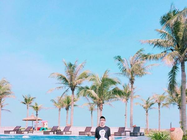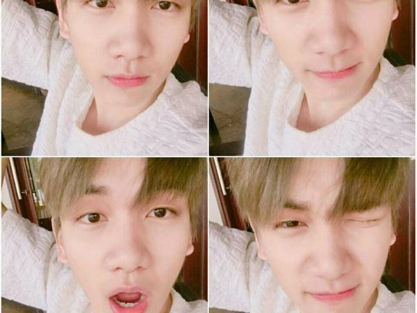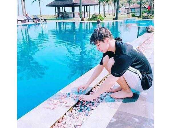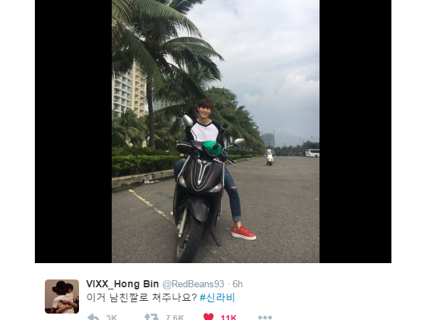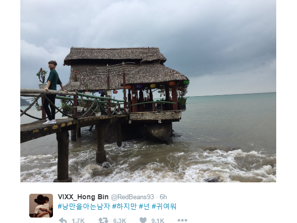 Sau Ravi, đến lượt em út Hyuk lên sóng twitter của HongBin. Hyuk đang tạo dáng tại một nhà hàng nổi ở biển Đà Nẵng.