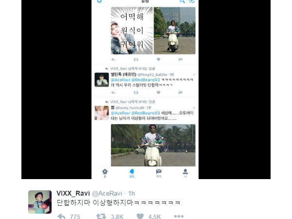 Ở một diễn biến khác, bức ảnh “bá đạo” của Ravi cuối cùng cũng lọt vào tầm ngắm của chính chủ. Hệ quả là Ravi phải tag HongBin vào và đề nghị HongBin xóa hình Ravi trong ảnh đi, vì Ravi thấy Starlight chỉ share mỗi ảnh của Ravi thôi. Cuối cùng, đối diện với sự “lầy lội” của Starlight, Ravi quyết định đăng lên twitter của mình nguyên series ảnh chế, kaka.