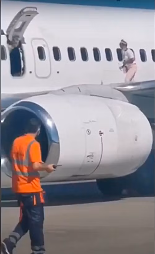 Trong đoạn video mới được đăng trên mạng xã hội, có một phụ nữ đang “đi dạo” trên cánh máy bay sau khi đã mở cửa thoát hiểm, chỉ đơn giản vì cô thấy “nóng quá”.