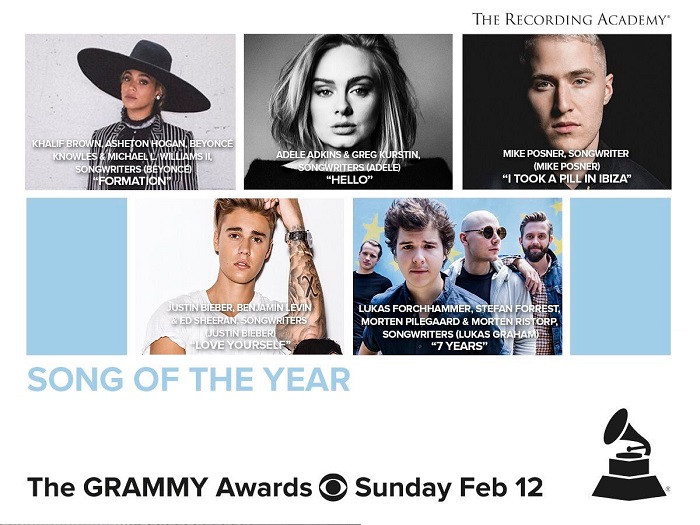 Với những thành tựu xuất sắc đã đạt được trong năm 2016, ba cái tên sáng giá nhất đã thống trị các bảng đề cử chính là: Beyoncé, Adele và Justin Bieber. Trong đó, Adele và Beyoncé tỏ ra không hề thua kém nhau khi luôn là đối trọng nặng ký trong các đề cử quan trọng nhất. Các hạng mục Record of The Year (Bản thu âm của năm) và Song of The Year (Ca khúc của năm) chứng kiến sự cạnh tranh giữa Hello - Adele và Formation - Beyoncé.