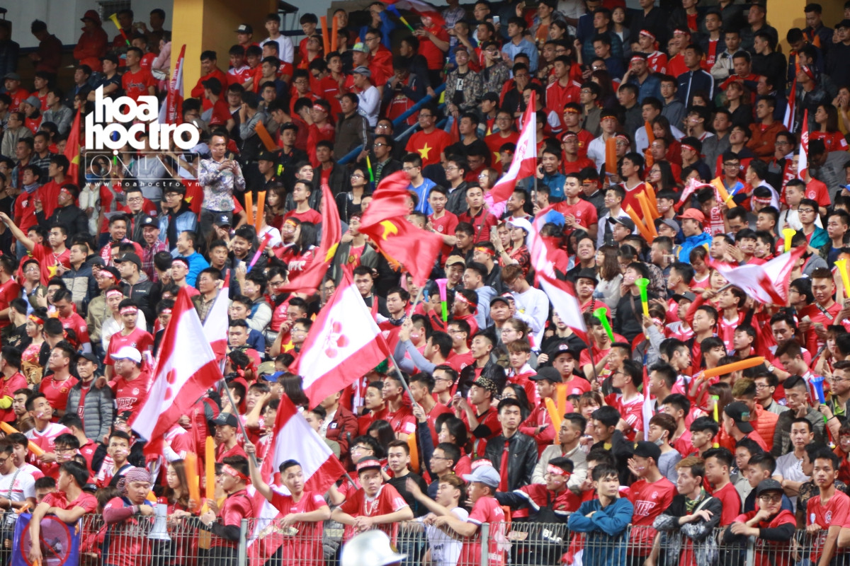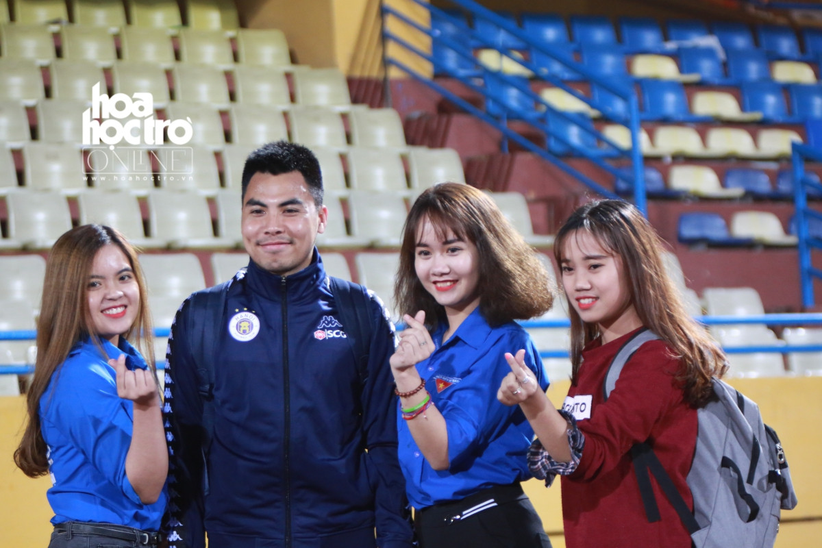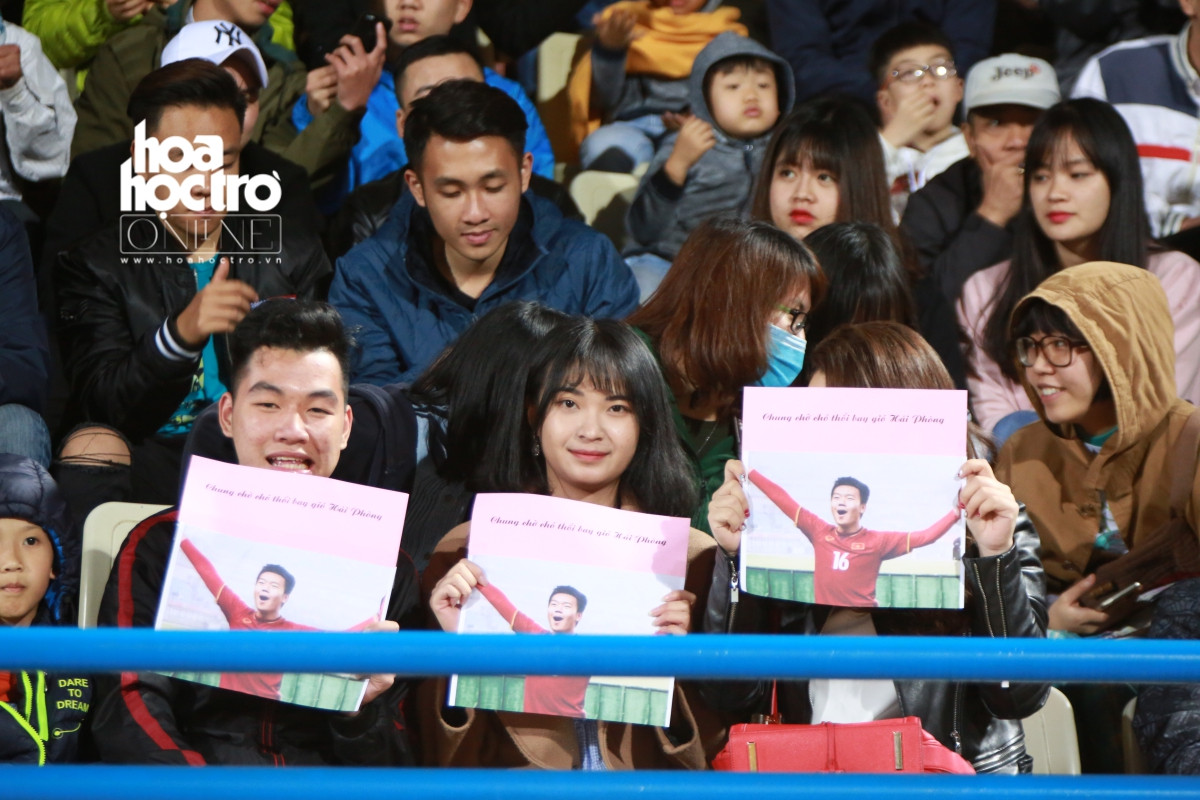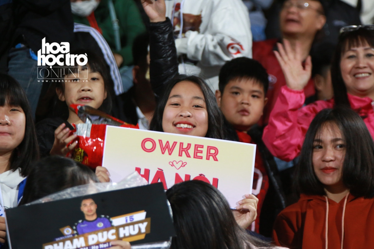 Bắt gặp trên khán đài là nhiều bạn trẻ ra sân để cổ vũ cho các chàng trai trong CLB Hà Nội.