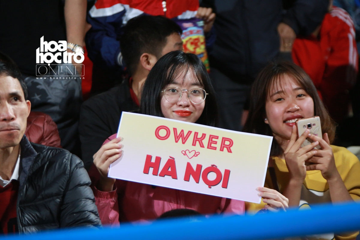 Các Owker Hà Nội mang theo bảng cổ vũ nổi bần bật trên khán đài.