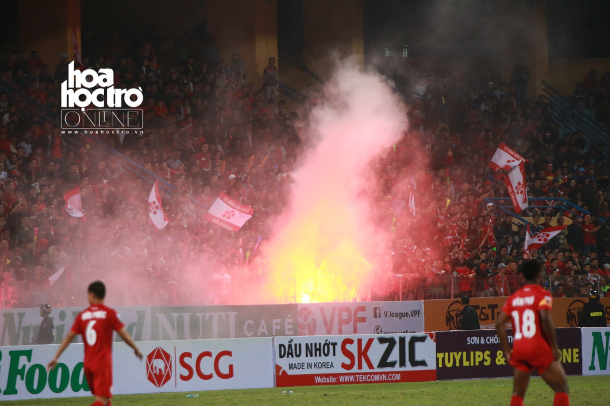 Sau bàn thua, cổ động viên Hải Phòng quá khích đã đốt pháo sáng, rồi ném xuống sân.