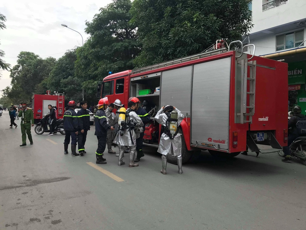 Nhận được tin báo, nhiều xe PCCC chữa cháy nhanh chóng được huy động đến hiện trường. Hiện công an đang tiếp cận đám cháy. Nhiều cư dân sống tại các tầng của toà nhà đã di tản xuống đất.