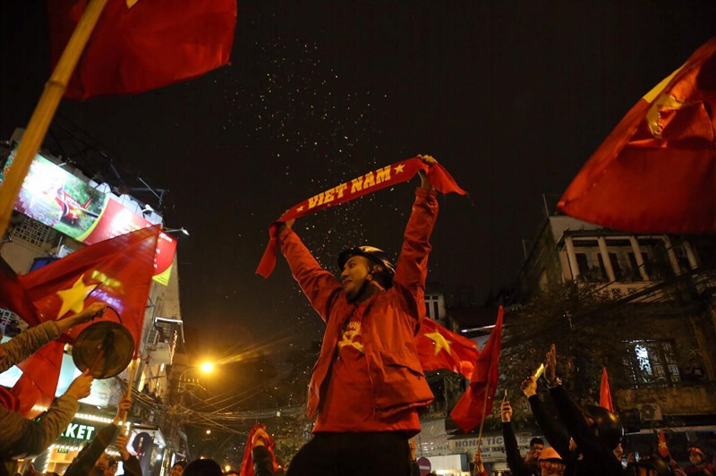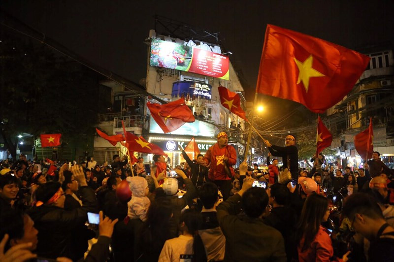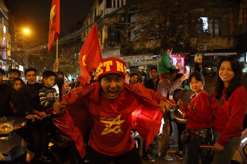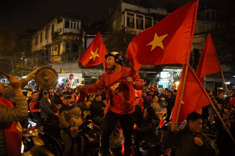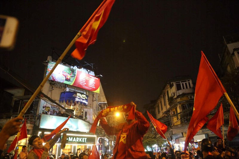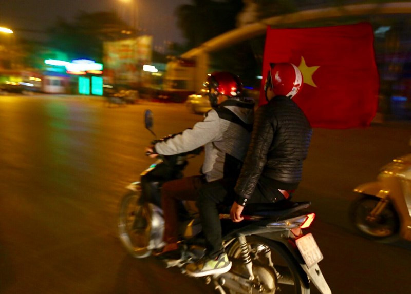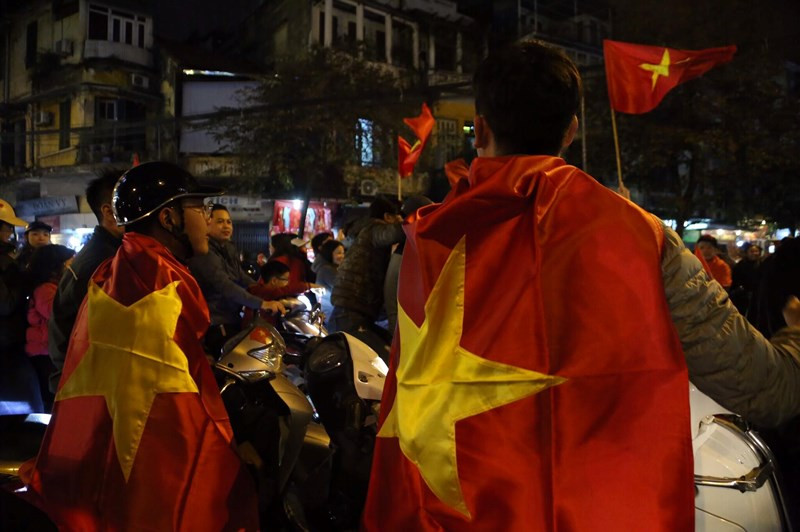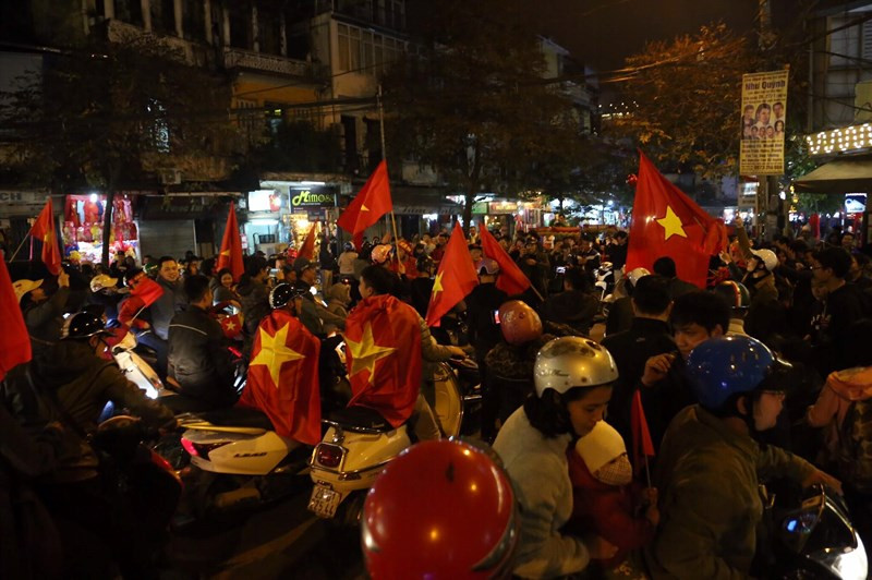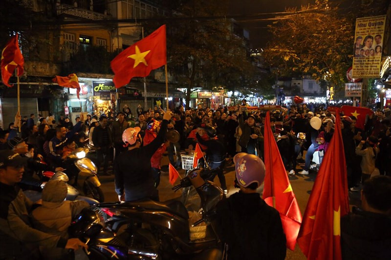 Đã rất lâu rồi đường phố Hà Nội mới lại chứng kiến không khí ăn mừng của fan hâm mộ bóng đá nước nhà "nhiệt" đến thế!