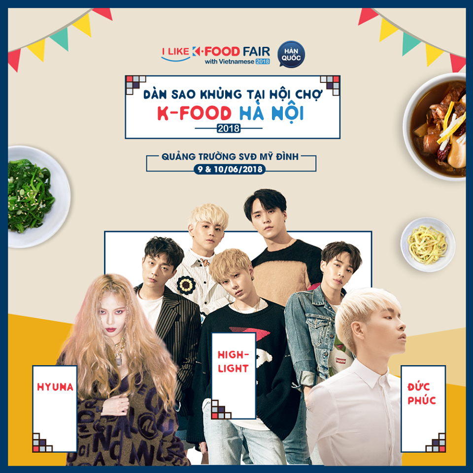 Ngoài chương trình biểu diễn tại lễ khai mạc sự kiện vào tối ngày 9 tháng 6 có sự tham gia của các nghệ sĩ đình đám tới từ Hàn Quốc là nữ ca sĩ HYUNA và nhóm nhạc nam HIGHLIGHT, nam ca sĩ Việt Nam Đức Phúc, “Hội chợ Ẩm thực Hàn Quốc tại Hà Nội năm 2018” còn có nhiều hoạt động phong phú dành cho người tiêu dùng Việt Nam