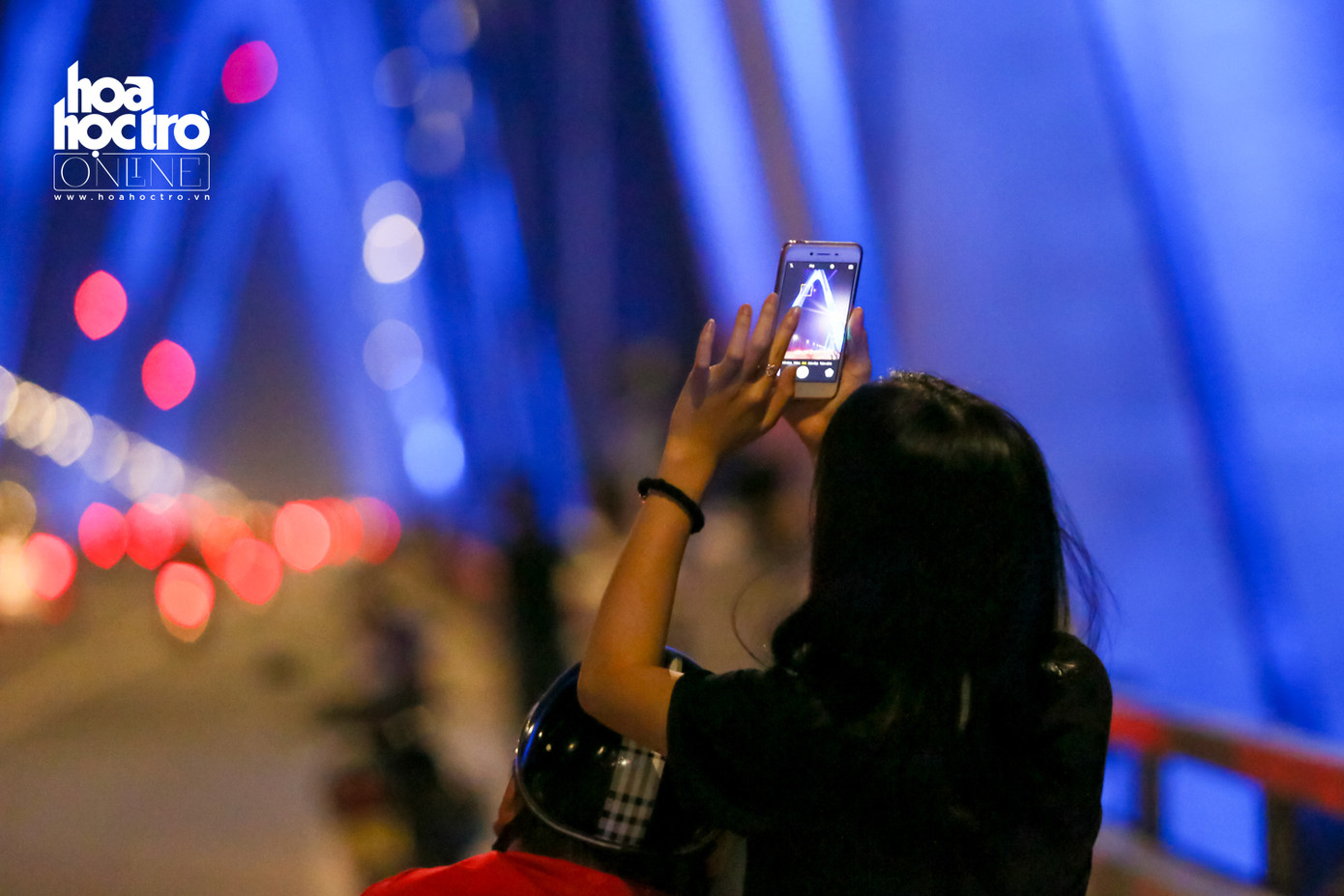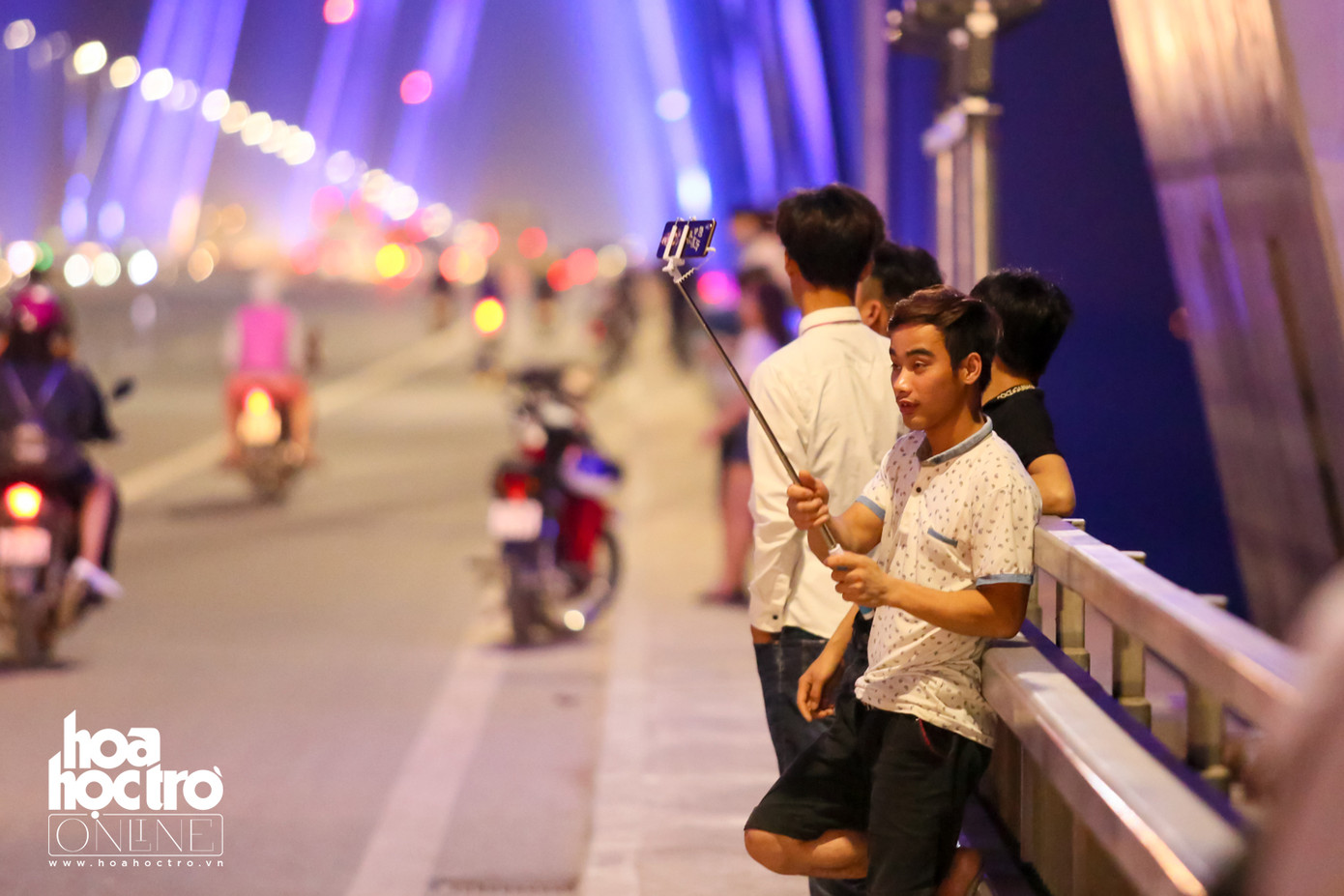 Trong đêm đầu tiên lắp đặt dàn đèn mới này, nhiều bạn trẻ đã có mặt để chiêm ngưỡng màn trình diễn tuyệt hảo của cây cầu Nhật Tân.