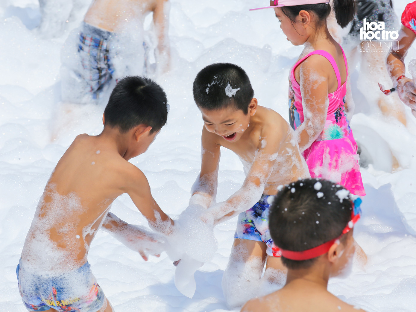 Những miếng bọt nước trắng muốt như những miếng kẹo bông kích thích sự vui chơi, khám phá của các bạn nhỏ.