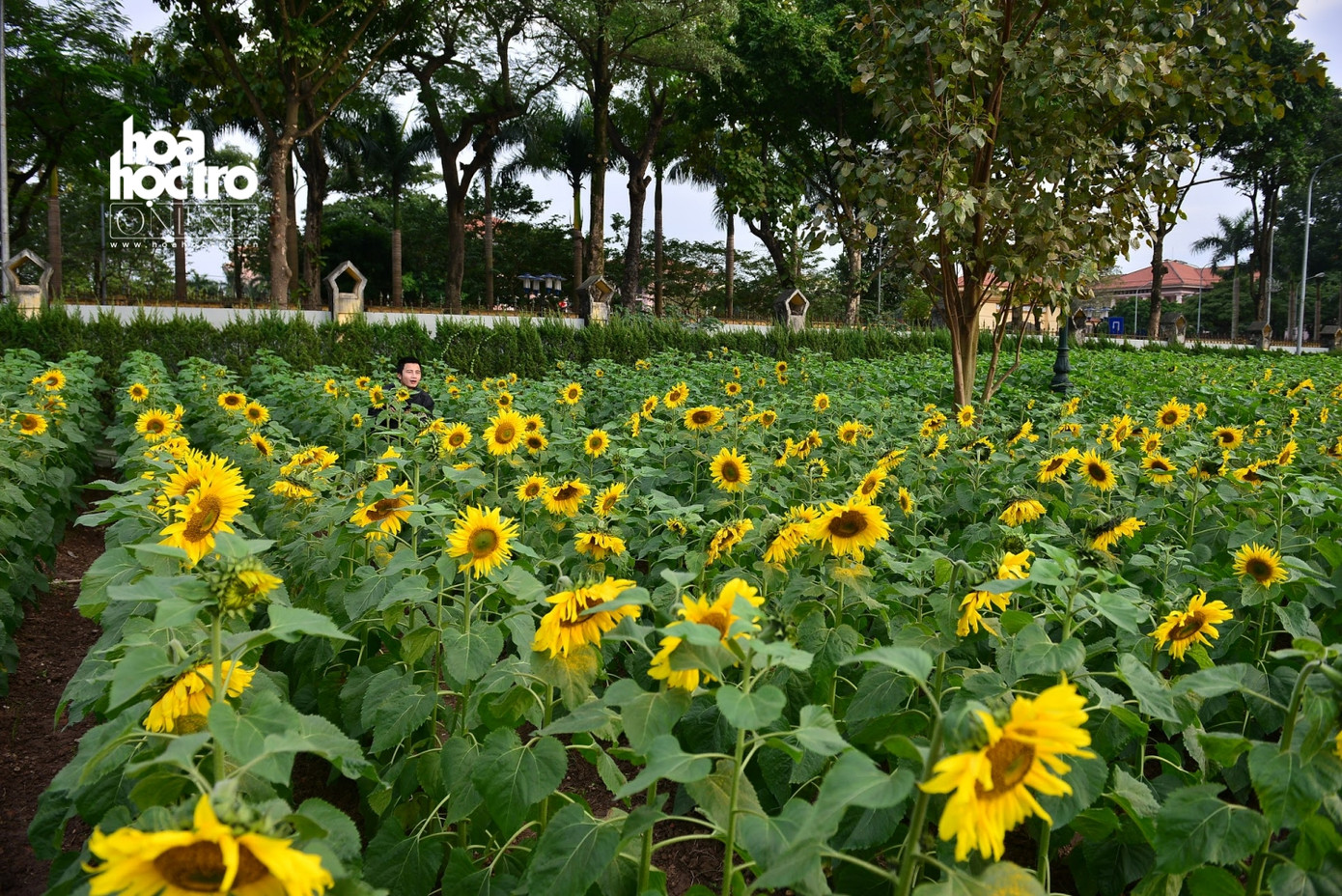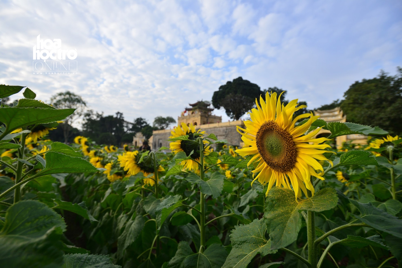 Vườn hoa hướng dương đang ở độ nở rộ đẹp nhất, nằm giữa khuôn viên khu di tích Hoàng Thành Thăng Long rộng khoảng 2000m2.
