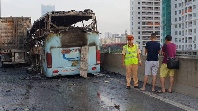Liên quan đến vụ việc trên, lãnh đạo đội CSGT số 6, Công an TP Hà Nội cho biết, chiếc xe bốc cháy là xe khách giường nằm, trên xe vắng khách, khi phát hiện cháy đa phần hành khách đều thoát được ra ngoài, riêng có một nữ hành khách không thoát kịp, tử vong.