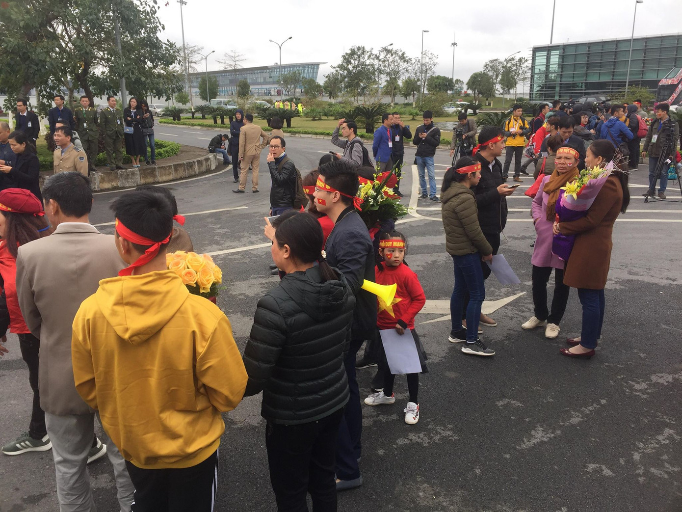 Nhiều người không quản ngại đường xa, tập trung ở khu vực sân bay để đón các chàng trai trở về. (Ảnh: Tiến Nguyễn)