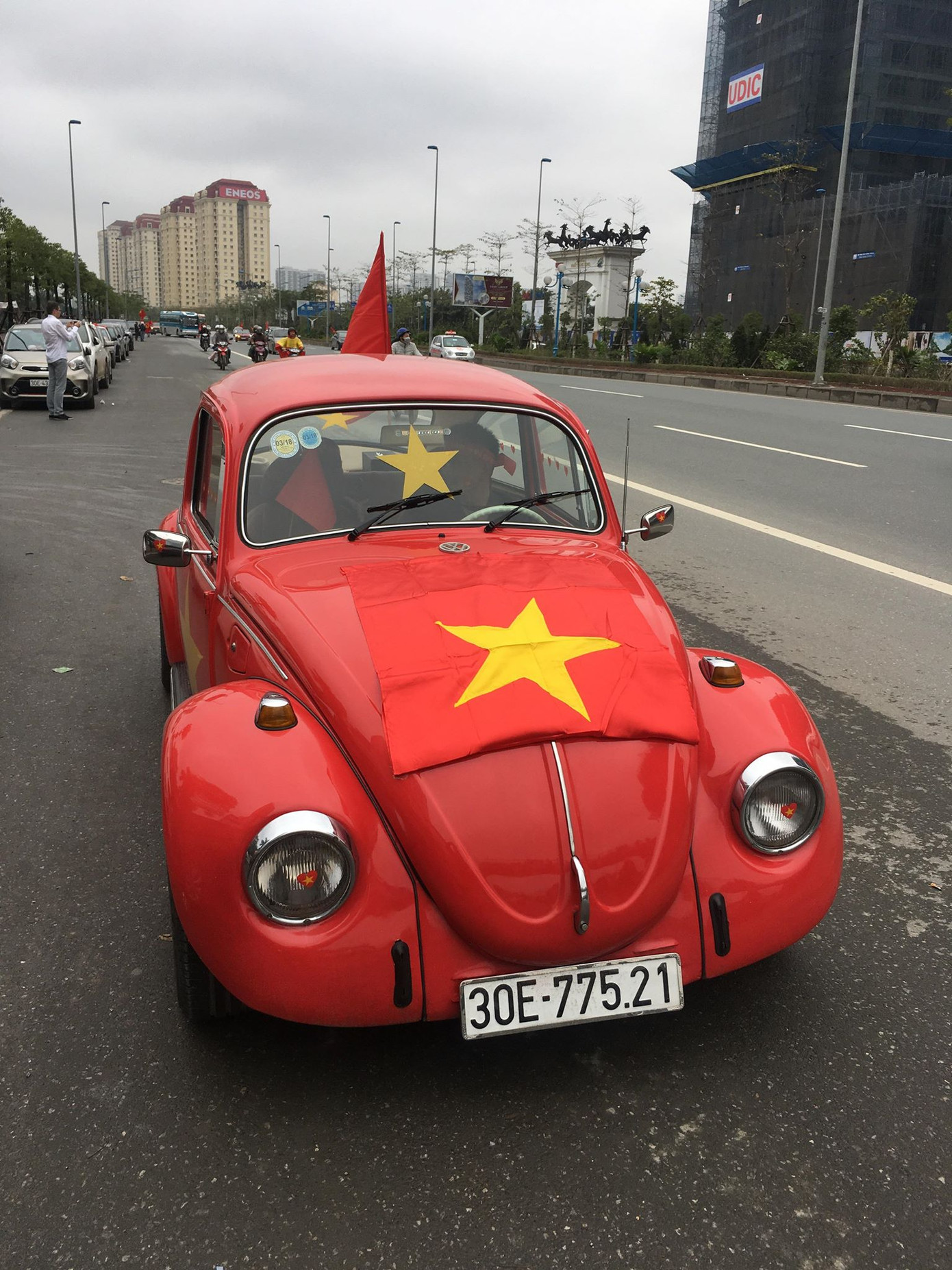 Nhiều xe được trang trí thể hiện tinh thần chiến thắng của đất nước.