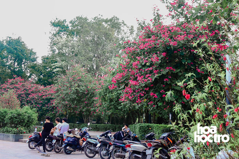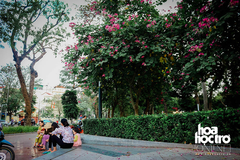 Dưới bóng cây ban, hàng loạt hoạt động của người dân Hà thành vẫn nhộn nhịp như vậy, chỉ là khi một loài hoa khoe sắc, khung cảnh thiên nhiên và hoạt động sống như hòa lại, tạo nên một bức tranh giữ lòng thủ đô.