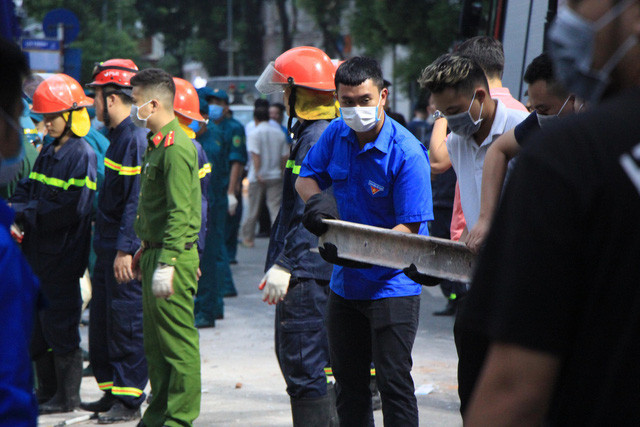 Đến khoảng 18h, lực lượng chức năng phối hợp với thanh niên tình nguyện vẫn đang tiến hành di chuyển đống đổ nát để dọn dẹp lối đi vào con ngõ có nhiều hộ dân sinh sống.