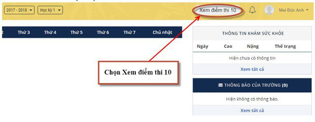 Bước 2: Chọn mục “Xem điểm thi 10”: